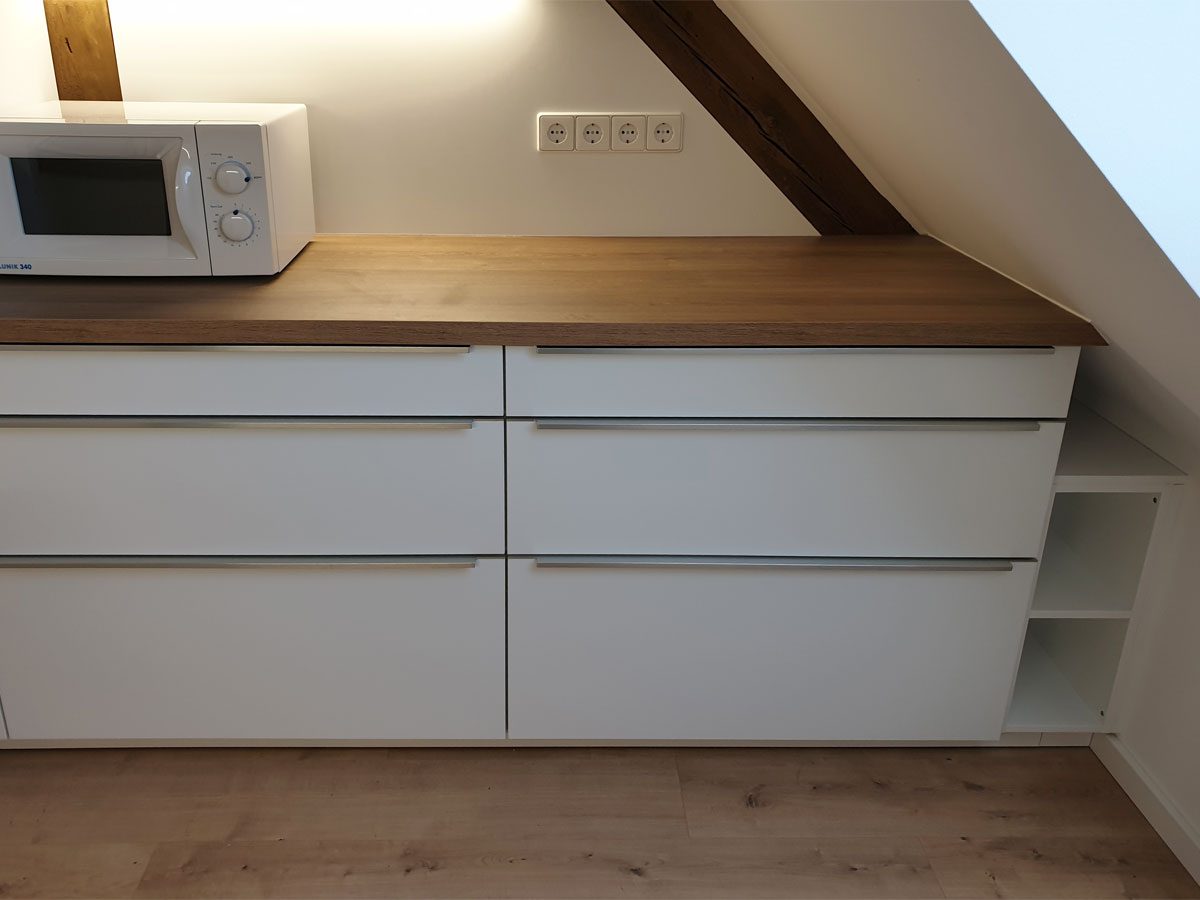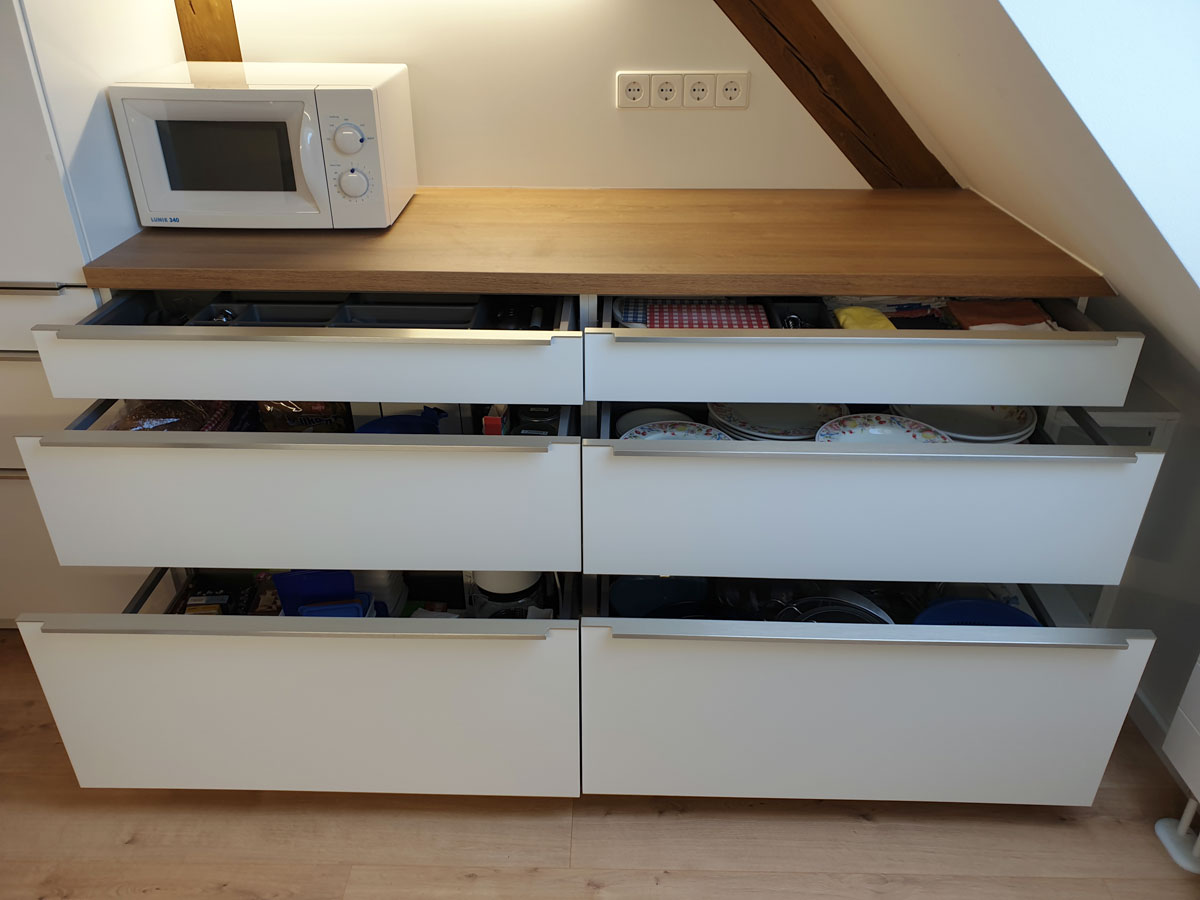 Einen großen Anteil unseres Kundenstamms sind private Haushalte mit unterschiedlichsten Ansprüchen und Wünschen. Doch auch für gewerbliche und öffentliche Auftraggeber sind wir regelmäßig tätig. Lassen Sie sich von den durch uns realisierten Küchen und Einrichtungen inspirieren.